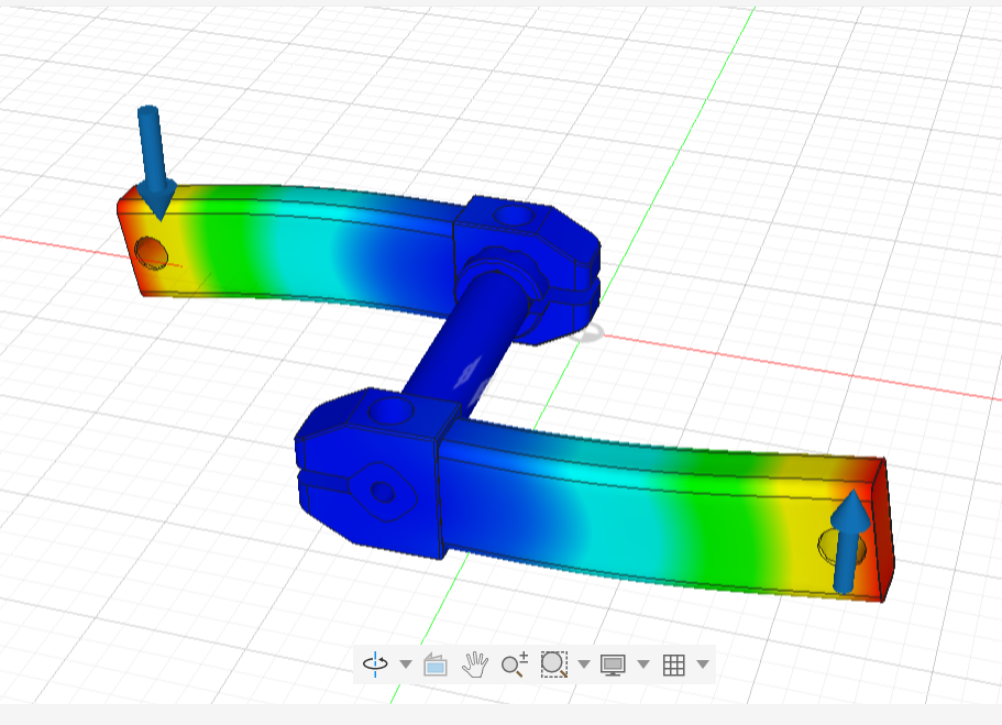ここで製作の一歩手前のシミュレーションについてお話します。駆動部品はパイロットの強い力が一点に働くためその部品が安全かどうかを製作を開始する前に検査します。ここでミスがあるとパイロットの怪我につながるので入念に確認します。