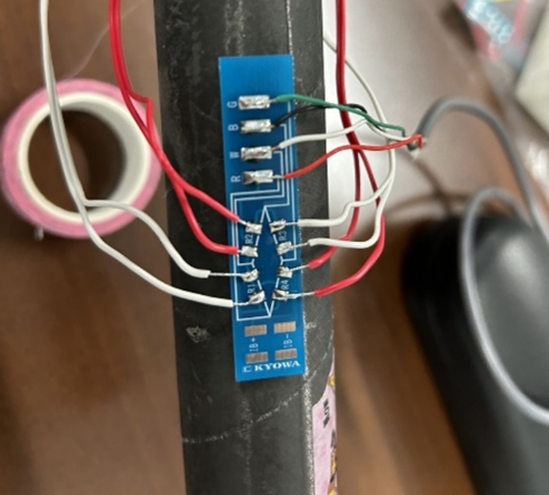 実機に乗せたひずみゲージ、アンプ、ホイートストンブリッジ、導線、ゲージ端子はすべて共和電業が無償で提供・貸し出ししてくれました。本当に感謝しかありません。