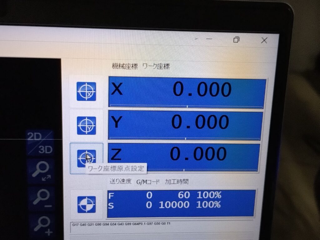 穴を空けて、再びドリル位置を板の表面スレッスレまで上げて、原点に設定します