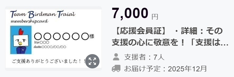 TBT応援会員証 でした! こちらは7人の支援者の方から選ばれました。             デザイン&発注がすでに完了しているため、もうじきお届け完了すると思います。それまでぜひ楽しみにお待ちください!