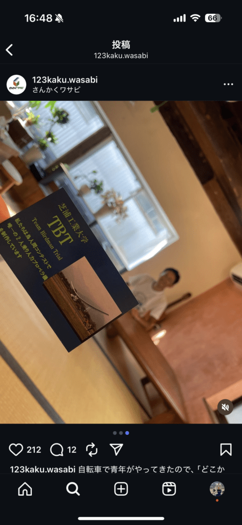 さらに、宿の方の知り合いに航空自衛隊の方がおられ、偶然にさんかくワサビのインスタグラムを見て、鳥人間コンテストのパイロットに会ってみたいと思ってくださったそうで、お話しする機会をいただきました。操縦に関するお話などもでき、貴重な時間を過ごすことができました。
