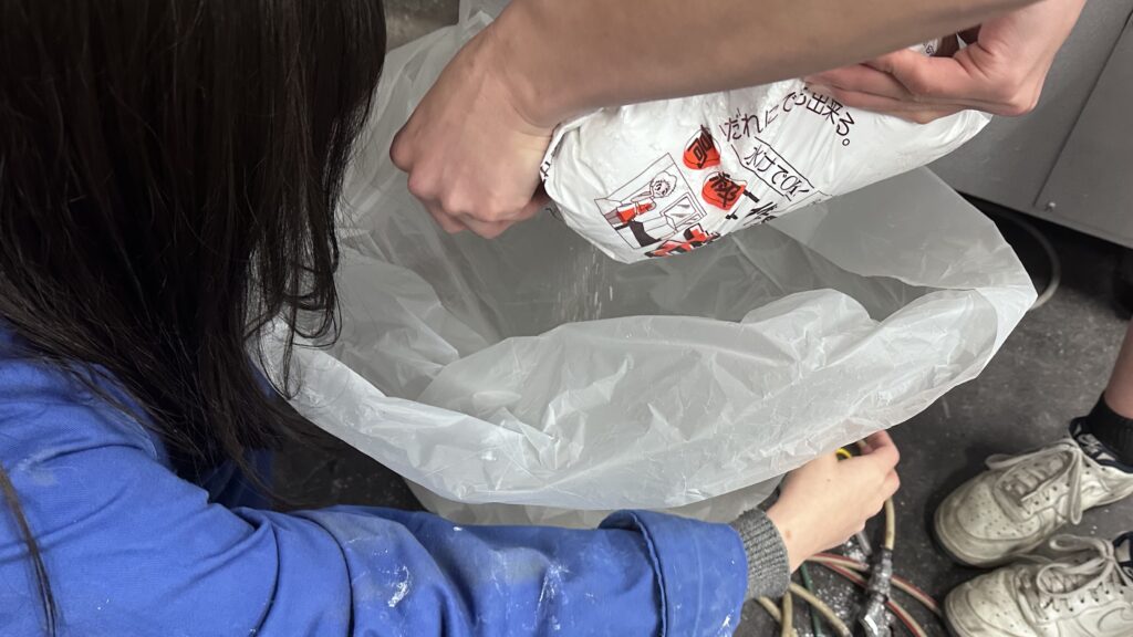 石膏の粉と水を混ぜていきます。ダマにならないように!あと水の量は書かれている通りにやりましょう。