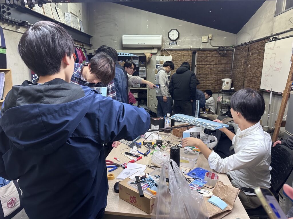 この日はみんな部室が閉まるギリギリの時間まで作業していました。普段では考えられない人数が部室に集まり作業していて楽しかったです。