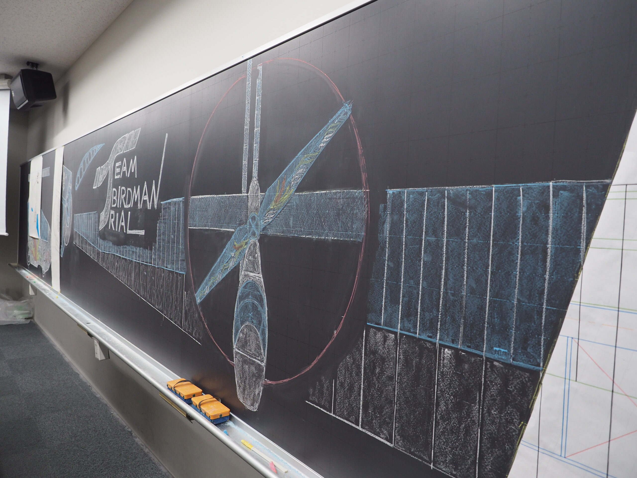 黒板アート!絵が得意な部員が描き上げてくれました。細かい部分は黒板ではなく紙に描き、その紙を黒板に貼ることで、繊細でかっこいい仕上げにしてくれました。