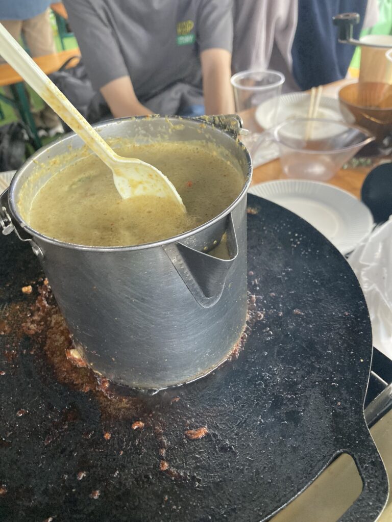 さて、BBQでは自分たちで肉を焼いたり、カレーを作ったり、パンケーキを焼いたりしました。最初は、量が少ないなどの意見もありましたが、みんな最終的にはお腹いっぱいになってくれました。カレーにはココナッツの粉末などが入っていていつもとは、違う味がして、美味しかったです。