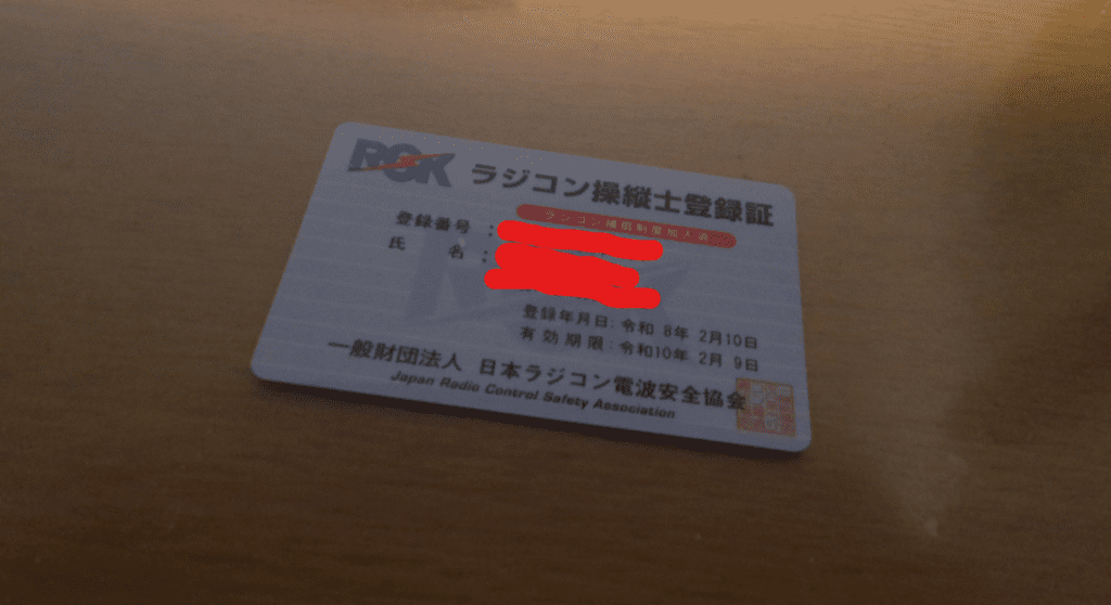 氏名や生年月日などを、郵便局の払い込み書に記入し、指定口座へ振り込みます。すると、二週間くらいでラジコン操縦士の登録証が自宅に届きます!(保険は受理日翌日から適用されるようです)