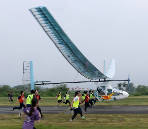 また、本チームの機体は他チームの約2倍の重量があるため、発進時に必要な運動エネルギーが大きく、機体後方からの人力による押し出しによって初速を付与する方式では、十分な離陸速度を得ることが困難です。この課題を解決するため、人カプロペラ機部門への出場当初より、パイロットのペダリングによって駆動する車輪を用いた自走加速方式を採用しています。しかし、従来の駆動系は駆動輪とプロペラが機械的に同期して回転する構造であるため、プラットホーム上ではプロペラを設計回転数まで加速させることが困難です。その結果、プラットホームから駆動輪が離地した瞬間に、両パイロットの駆動力が一度にプロペラへ伝達されてしまいます。