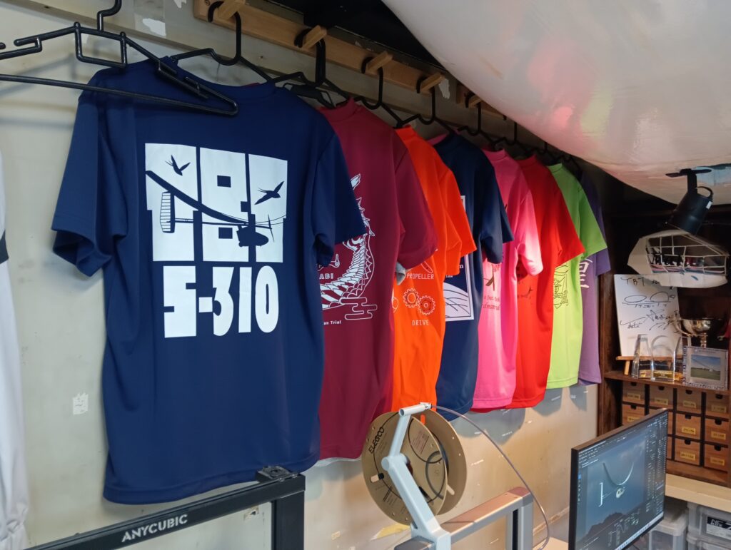こっちの棚にあるのは、鳥人間コンテスト2024のカレンダー、S-300のクリアファイル、S-290のプロペラの模型、そしてS-300の模型翼です。