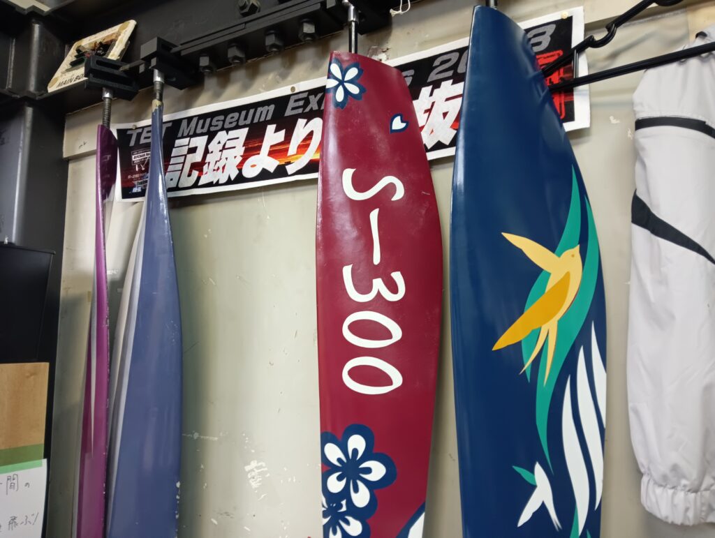 こちらは、歴代の部Tです。S-230(一番奥の紫の部T(TBTの歴代最高記録6,625mを叩き出した代))から、今年のS-310までの部Tが飾られています。