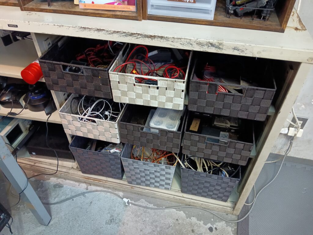 また、下のほうに置かれている半透明なBOXたちは、TF用の荷物BOXです。